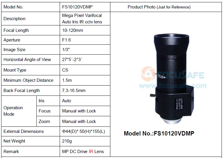 Focusafe 10-120mm 12X Megapixel Auto iris CS Lens