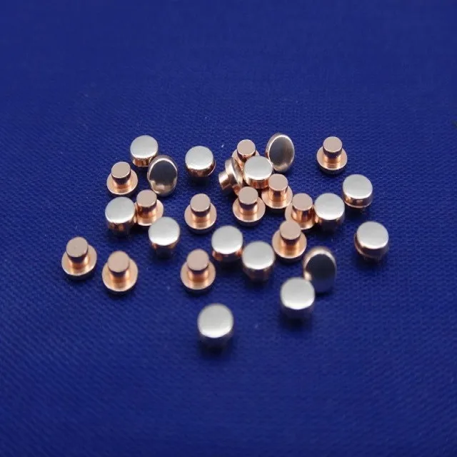 1-Materil: AgNi/Cu、AgCdO/Cu、AgSnO2/Cu、Ag/Cu etc. 2-Color:Silver 3-Type:By customer customized. 4-Application:For electrcial Sockets、Switch、Relay、Theremostator etc.