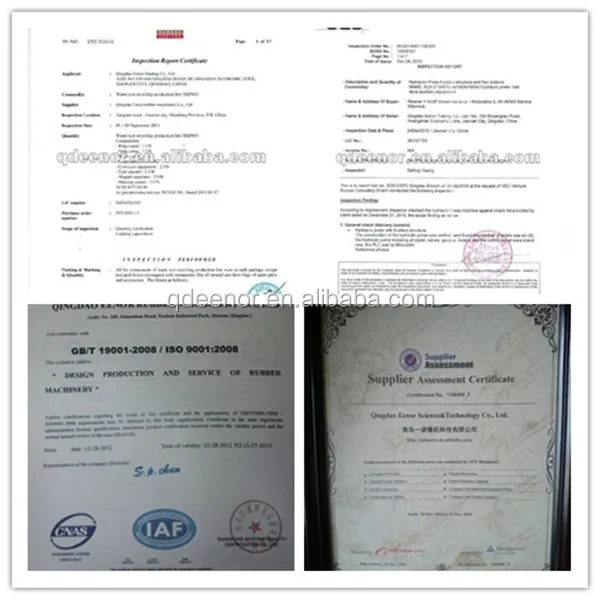 My company's products have passed the certification of the various, such as: plate vulcanizing machine has passed the SGS certification, scrap tire rubber powder production equipment certified by BV certification (France). Product best-selling more than 30 provinces and regions, and exported to southeast Asia, the Middle East, Africa, Europe and the America and other 20 shelves and regions.