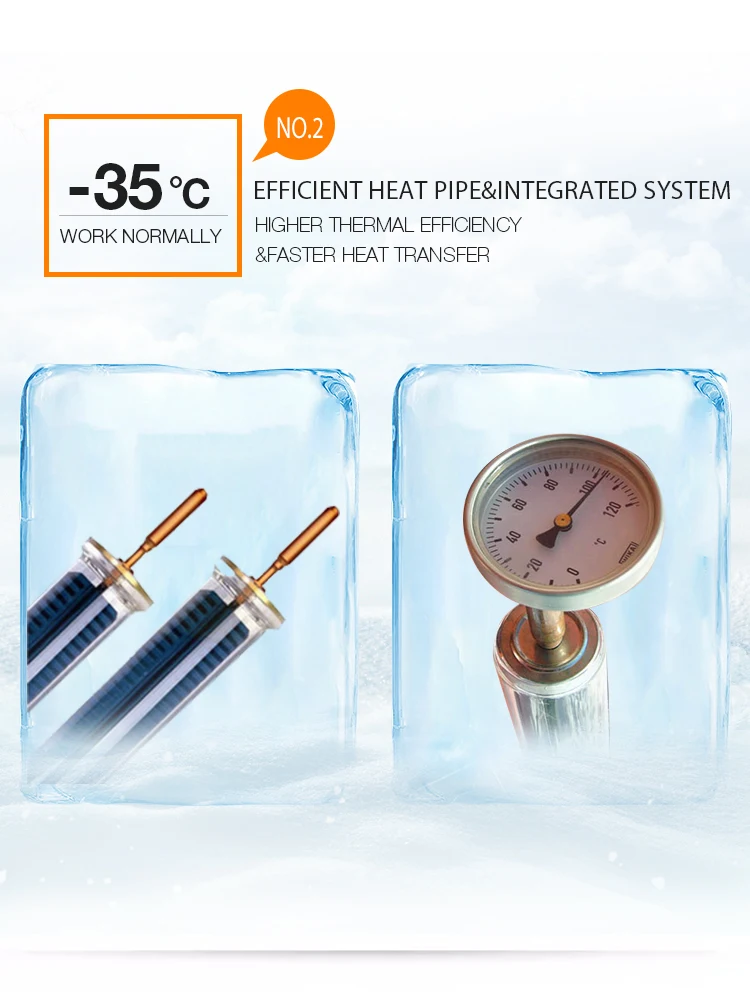 There is no water in the vacuum tube, the vacuum tube will not break and will not leak; the scale will not be generated in the vacuum tube, and the heat efficiency can be maintained for a long time.
