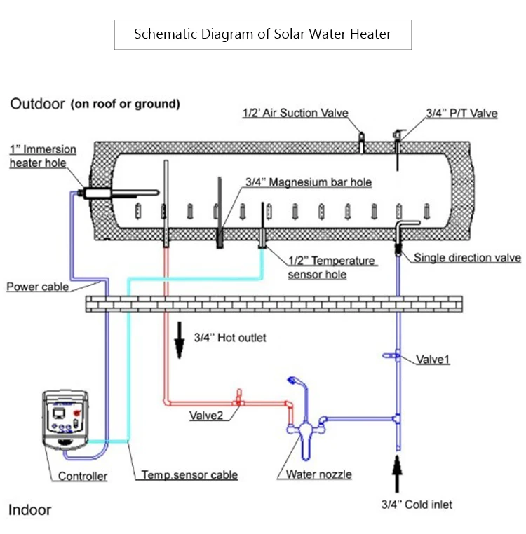 The solar water heater water tank adopts pressure design, and the hot water outlet pressure is equal to the tap water pressure, bringing you the best bathing experience (enjoy)