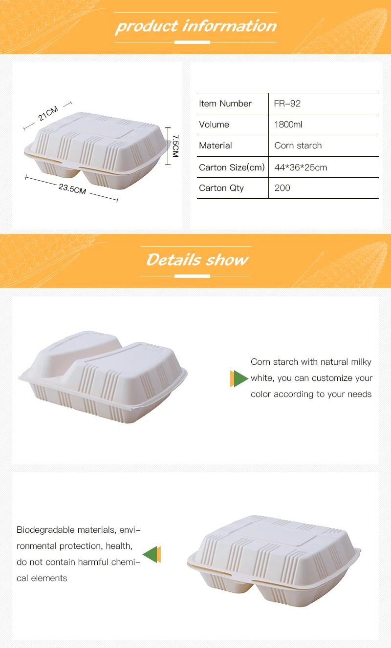 Biodegradable 2 Compartment Microwave Food Container