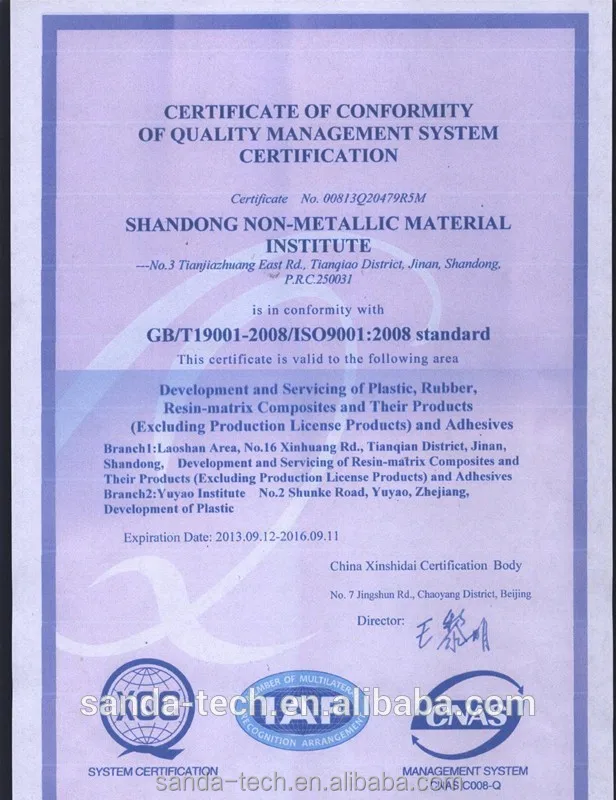 Our company is equipped with several sophisticated equipment, such like cutting machine for bulletproof vest, integrated forming machine for ballistic plates, and other first-rate devices. Sanda owns the biggest colony of press machine in the north of China, is the hub of manufacturing of composited materials. The production ability of ballistic plate has reached to 400 pieces at once with the sophisticated integrated heating-press system, all final products have good consistency, and ballistic performance as well. Continuous orthogonal type manufacturing system of aramid UD fabric is the key machine in the production of raw material for bulletproof vest, Sanda has imported from the United States the mentioned device, which is the most advanced in China and also makes Sanda now the most competitive manufacture in the industry of ballistic products. Pressure cutting system provides the possibility to cut all kind of material with any curve at once (excepting the water jet, any other cutting system is restricted by the type of material), there won't be any heating effect and toxic matters generated during the cutting progress. No secondary operation required after cutting (or secondary operation will be easier). It's safe, non-toxic, low-cost, fast, high efficiency, convenient and wide range of uses. At present we are using the water jet for cutting of all types of ballistic plates, hard chest armor, anti-stab fabric and other products. Sanda owns also painting device of polyurethane, heat pressing machine and others in addition.