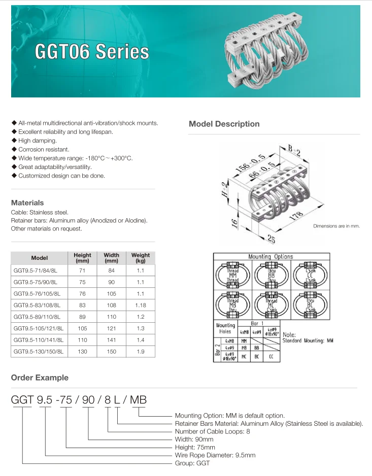 DPFLEX shock and vibration control wire rope isolator 6061-T6 Aluminum Alloy