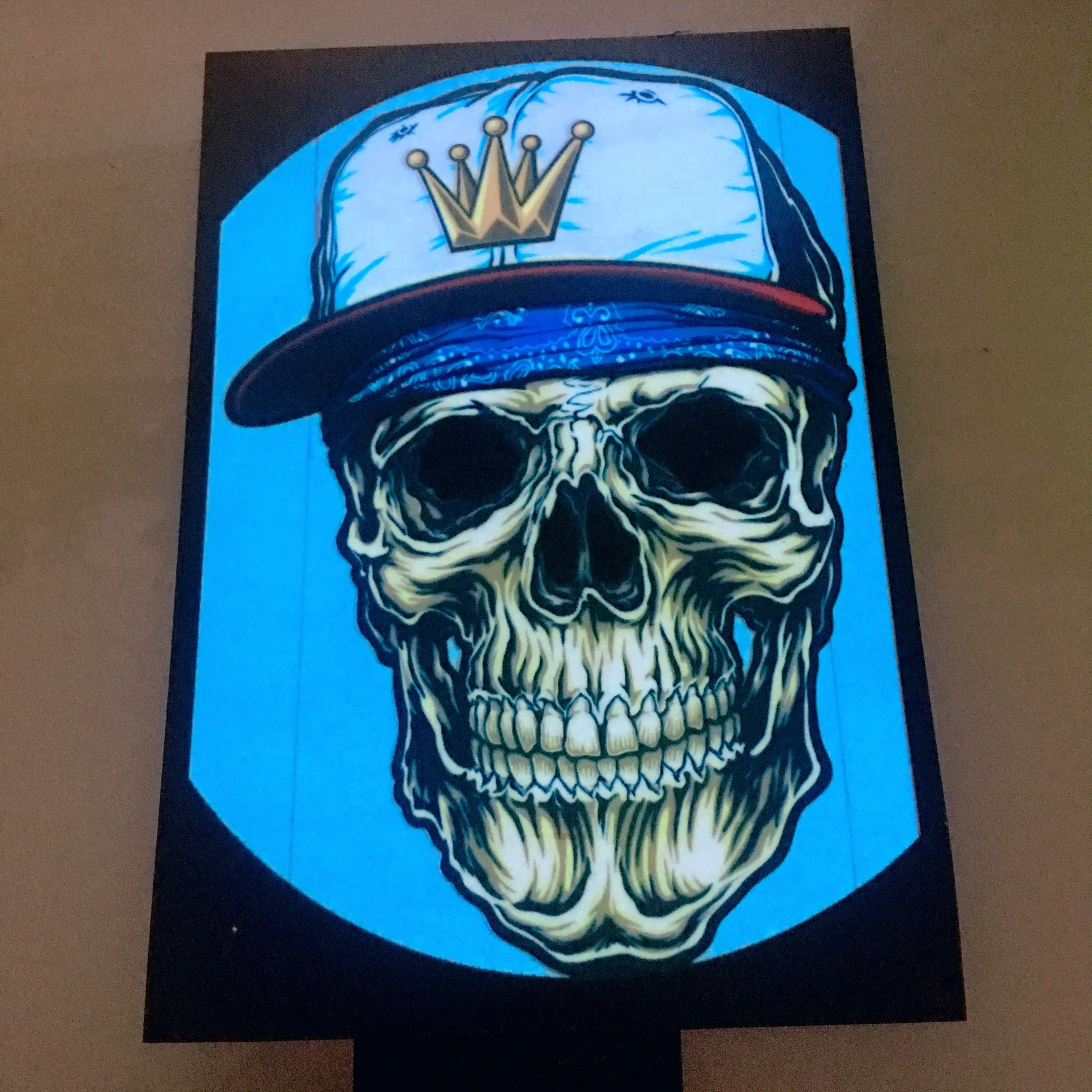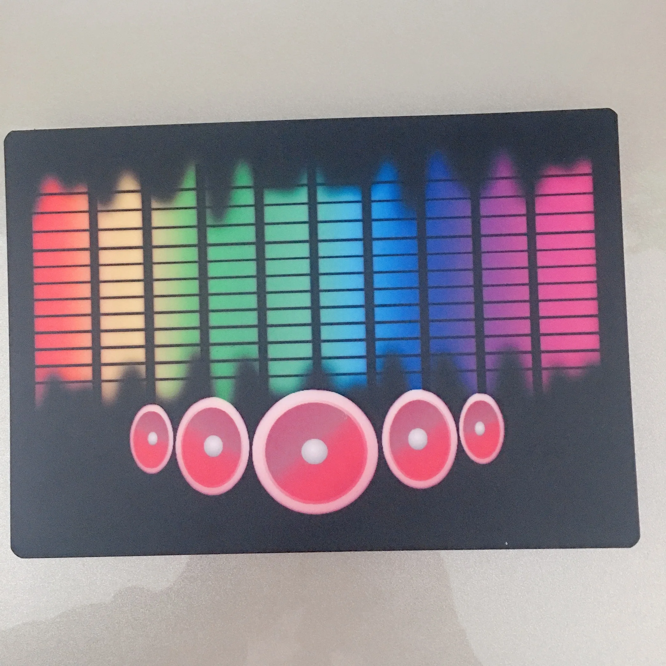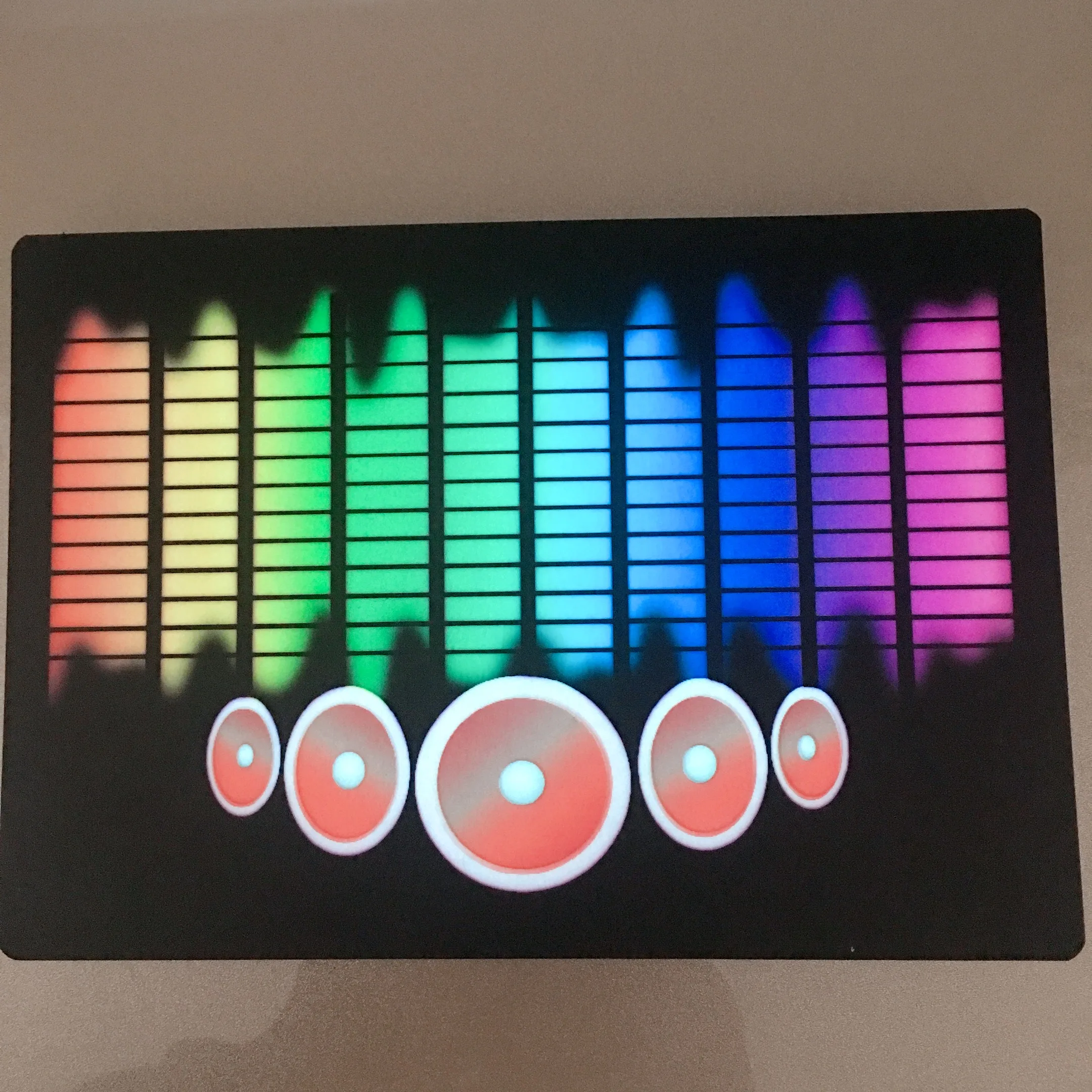 It has an electro luminescent panel (EL) across the front that reacts to music and and pump in time with whatever you are listening to.