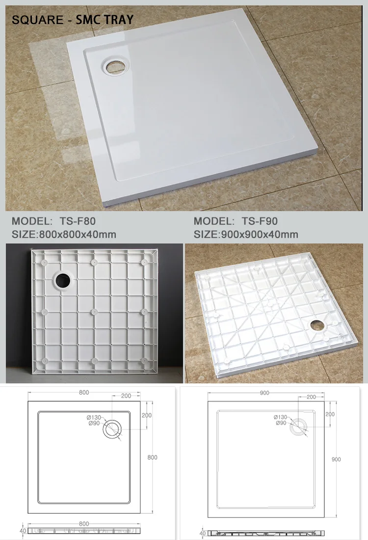 SMC shower tray SMC material : Its full name is “Sheet molding compound” main material is GF special yarn , UP unsaturated polyester low profile additive and MD padding etc. It is easy forming process、 wear-resisting strong、heat preservation、insulate、ageing resistance、high temperature resistance、prevent slippery not leak、not bibulous easy to clean、Long service life etc.