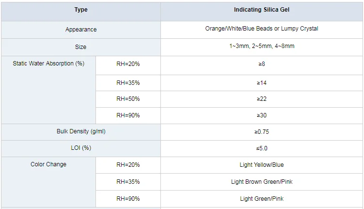 High Absorption Orange to Green Self-Indicating Silica Gel Orange & Blue to purple.