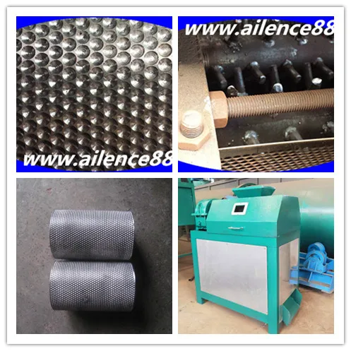 This machine by the motor drive belt and pulley, through reducer is passed to the drive shaft, and through the open gear and the driven shaft synchronous, relative to one another. Material from the hopper to join, after roll extrusion, demoulding pelletizing, and through a chain, transferred to the broken screen studio, sieve grain and separation of finished products (the ball), and then return material mixed with new material, and then to granulation. As the motor turns continuously, material into the ceaselessly, can realize batch production.