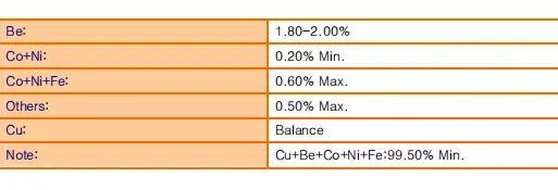 European Standards: CuBe2, DIN 2.1247, CW101C to EN