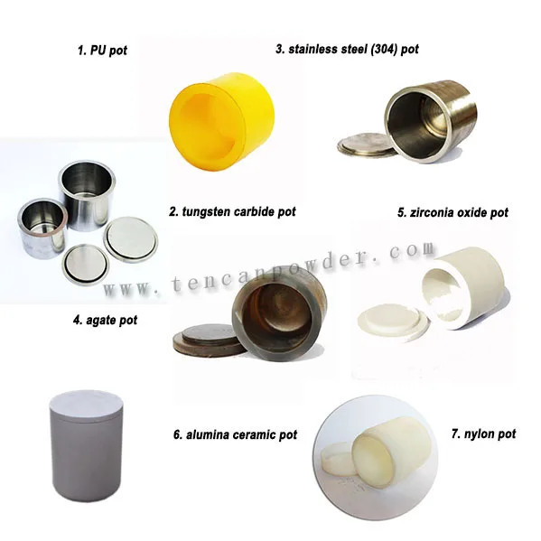 zirconia pot, alumina pot, nylon pot, PU pot, tungsten pot, etc. And we can also provide