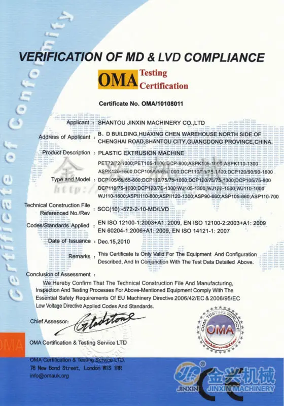 V.The related certificate