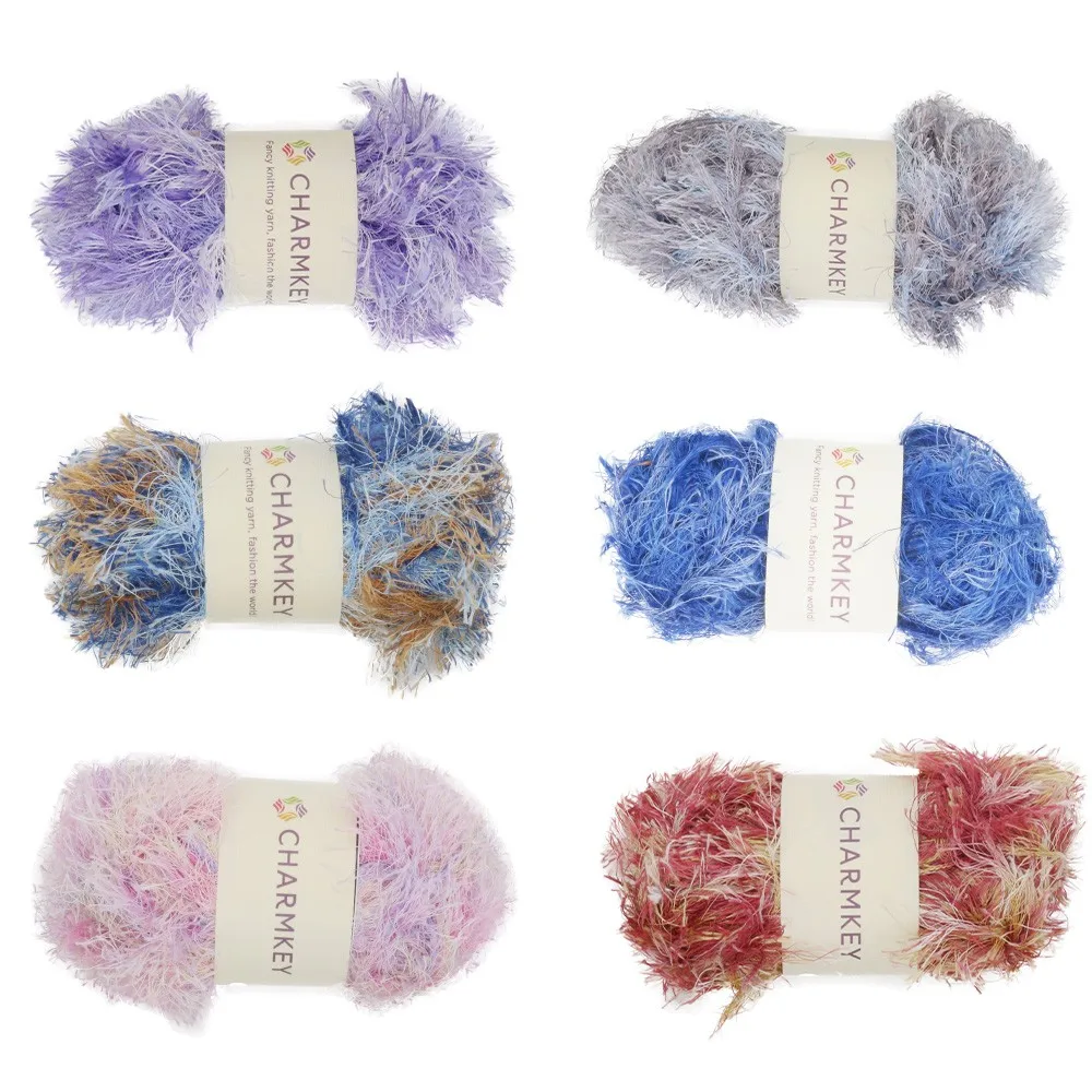 Charmkey colorful soft eyelash 100% polyester spun yarn for hand knitting yarn free samples