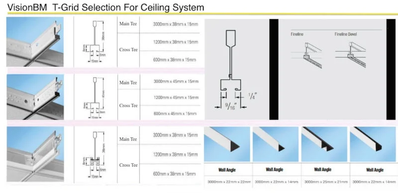 The U type bar of UDT is designed to let the space appear solid looking; by pre-painted double side, the U type concave of the bar is in contrast color design makeing the products more attractive. The assembley is make with overlap structure; therefore, the grids are matched completely and the connected sides are flat and beautiful. The connector of the bar is in cross appearance. (groove ceiling grid,hanging ceiling grid)