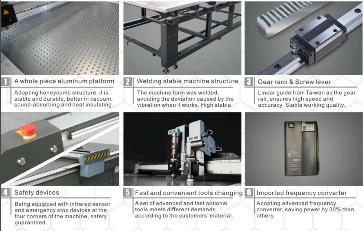 RZCUT-1007 CNC Leather Cutting Machine is a professional cutting system for leather. With this machine, you can conduct rapid nesting and efficient cutting operation, while saving time, manpower and material. It is designed for sample cutting and small bulk production, specially providing a revolutionary cutting solution for footwear, case and bag, car and plane chair, furniture and apparel industries.