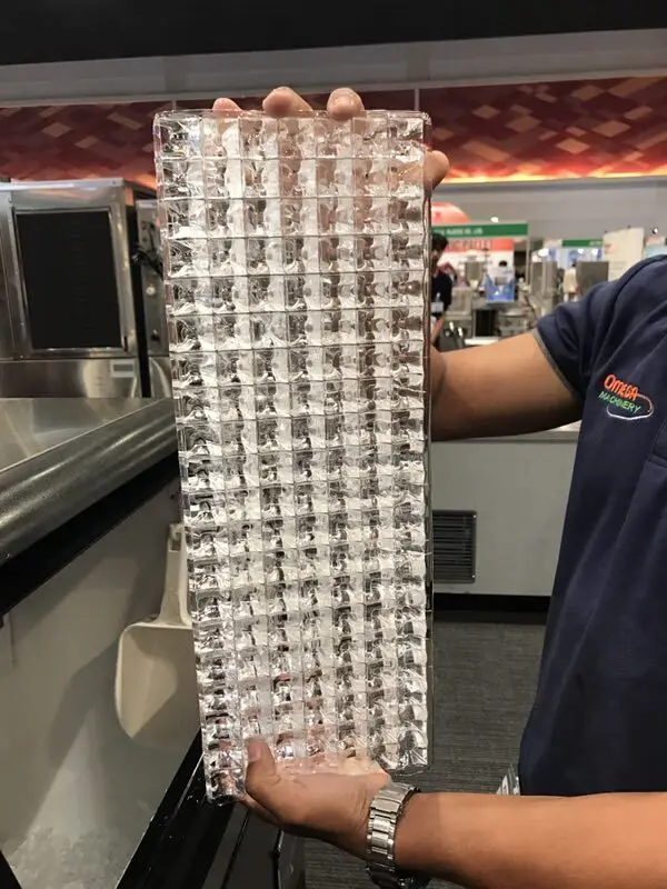 The finished translucent cube ices were made by the ice making machine