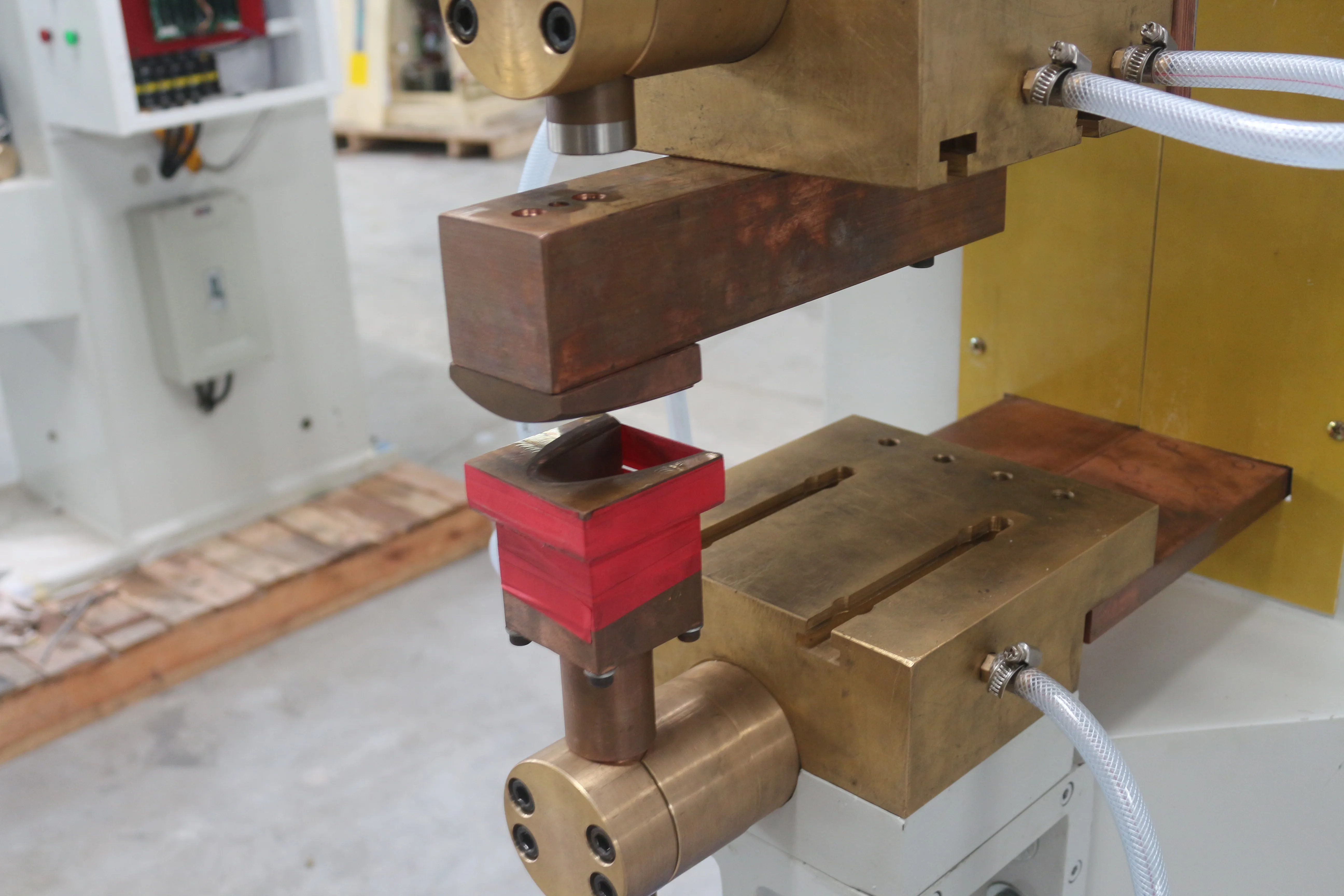 ·Welding Transformer: Adopt high purity silicon steel disc refined welding transformer; Good permeability and electrical conductivity; Less consumption of electricity; Be able to weld the metal plates like 8mm+8mm low-carbon steel.