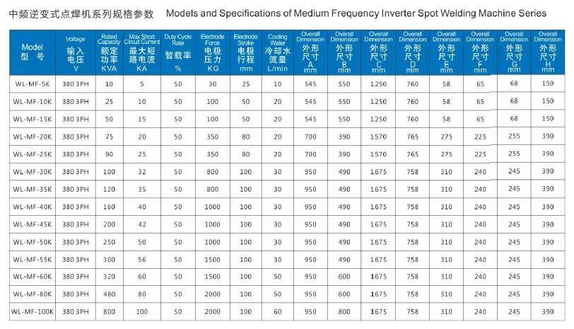 Medium Frequency Inverter DC Spot Welding Machine is an advanced welding machine with wide application. The welding transformer is in small size but the output energy is large. Three-phase AC will be converted into DC after being rectified. Then the DC will be converted into medium frequency 1000Hz square wave to be connected to a primary welding transformer through invert circuit which is composed of IGBT. The MF square wave will become small pulse DC to the electrode for welding workpiece through the depressurization and rectifying process in the aluminium copper medium frequency inverter dc spot welding machine. The invert will adjust the duty ration of IGBT through the feedback primary or secondary current so as to achieve a constant current of the welding process.