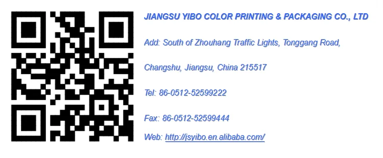 Jiangsu Yibo Color Printing & Packaging Co., Ltd., which is located in Changshu, Jiangsu Province, has been established since 2002 and has own import and export rights. Now, our company employs about 200 staffs, and covers an area of 15,000 ㎡, where the plant and office block occupy 10,000 ㎡.