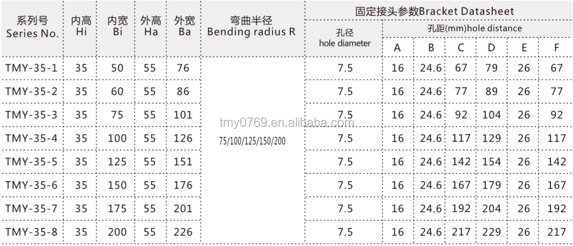 INNER WIDTH | 50mm,60mm,75mm,100mm,125mm,150mm,175mm,200 |