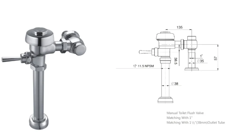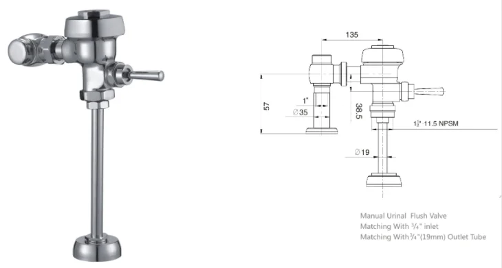 | Type | Hand control / hand press flush valve, exposed,US styles |