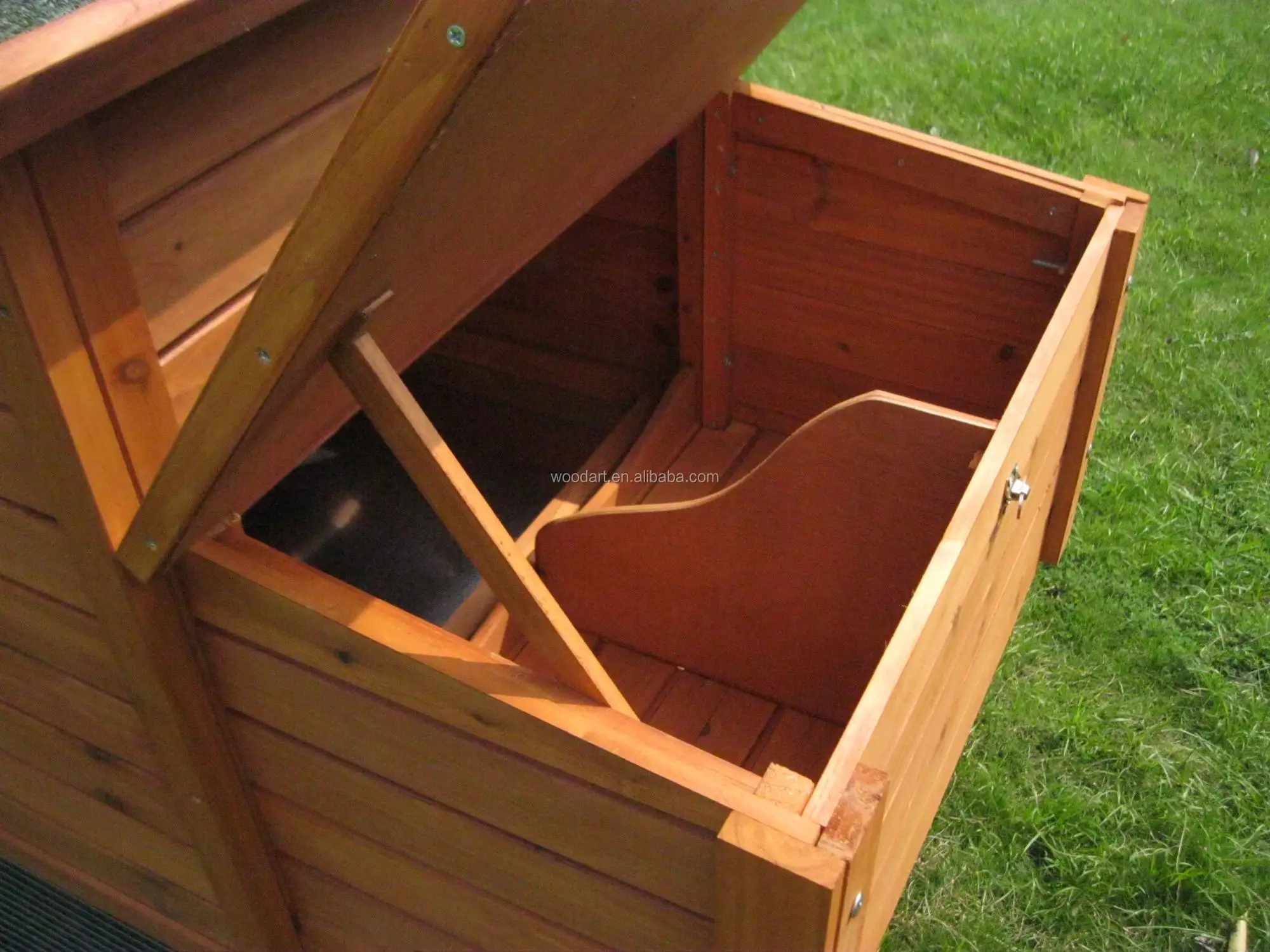 Feature: | * waterproof and UV proof and asphalt roof * window design for ventilation makes your pet feel more comfortable * pull-out tray for easy cleaning * the ladder design for climbing * twin nest box *large run design |