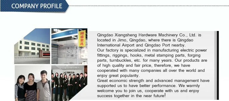 Main products | Forging parts, Electric fitting parts, Eye bolt, Shackle, Turnbuckle, Wire rope clips, Link Chain, Aluminum sleeve, Thimble, Rigging hardware, Link Chain, Hooks |