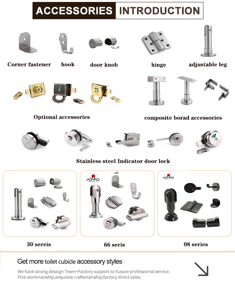 Toilet partition accessories | Door Lock | Partition Leg | Door Hinge |