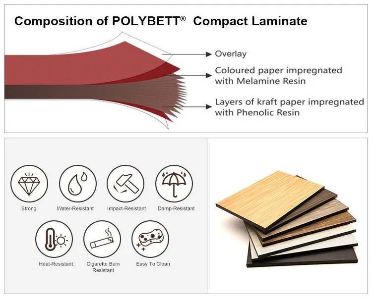 Material | 12mm or 18mm thick Aogao Compact Grade, black core material damp-proof, collision resistant. endures Stains, easily Cleaned |