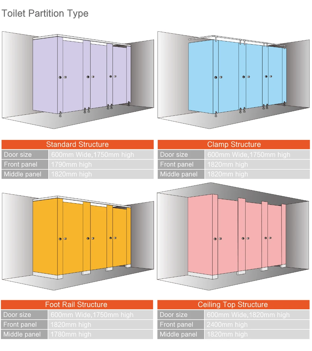 Toilet partition | Compact HPL toilet partition | PVC & HPL composite panel partition | Aluminum Honeycomb & HPL composite panel partition |