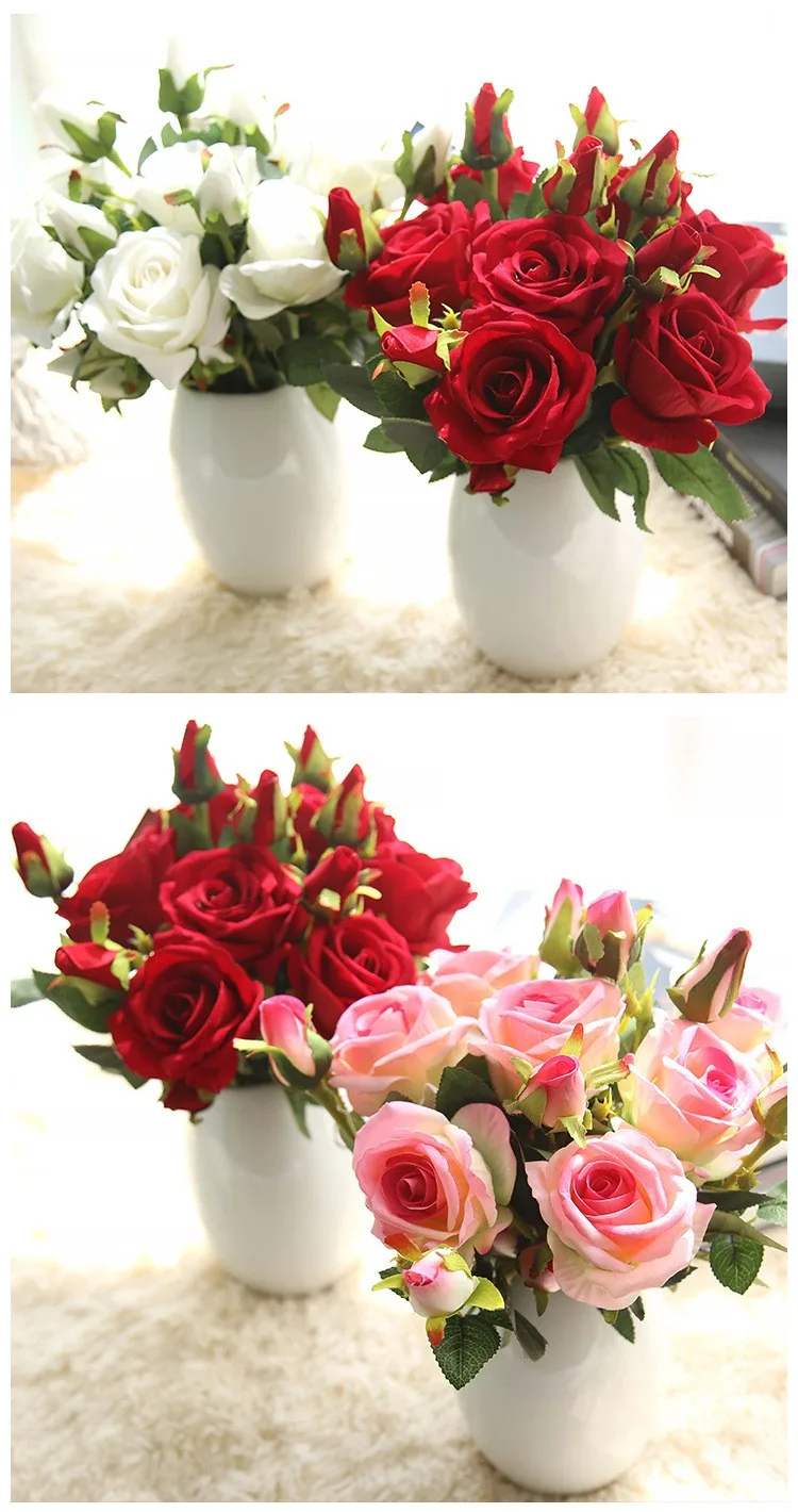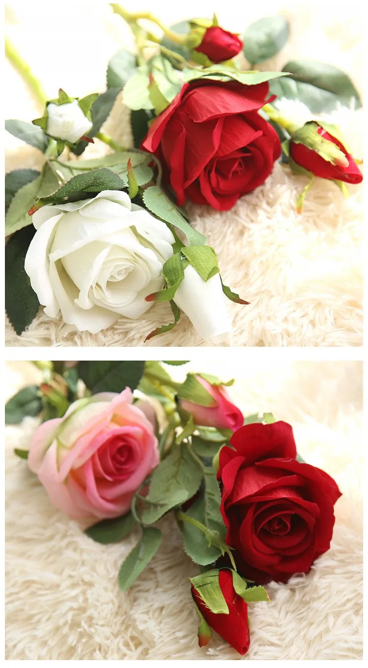 Competitive price natural fake artificial velvet roses flowers for wedding