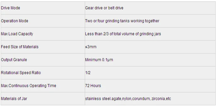 Planetary Ball Mill has four ball grinding tanks installed on one turntable. When the turntable rotates, the tank axis makes planetary movements, the balls and samples inside the tanks are impacted strongly in high speed movement, and samples are eventually ground into powder. Various kinds of different materials can be ground by the mill with dry or wet method. Minimum granularity of ground powder can be as small as 0.1μm.