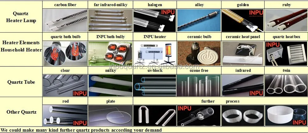 A: The material is quartz glass. Heating wire is tungsten or carbon fiber or alloy heating wire ,details ,please ask us.
