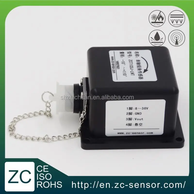 One axis tilt sensor alarm; High accuracy; With range -10 to 110 degree; With analog voltage output from 0.5 to 4.5Vol;