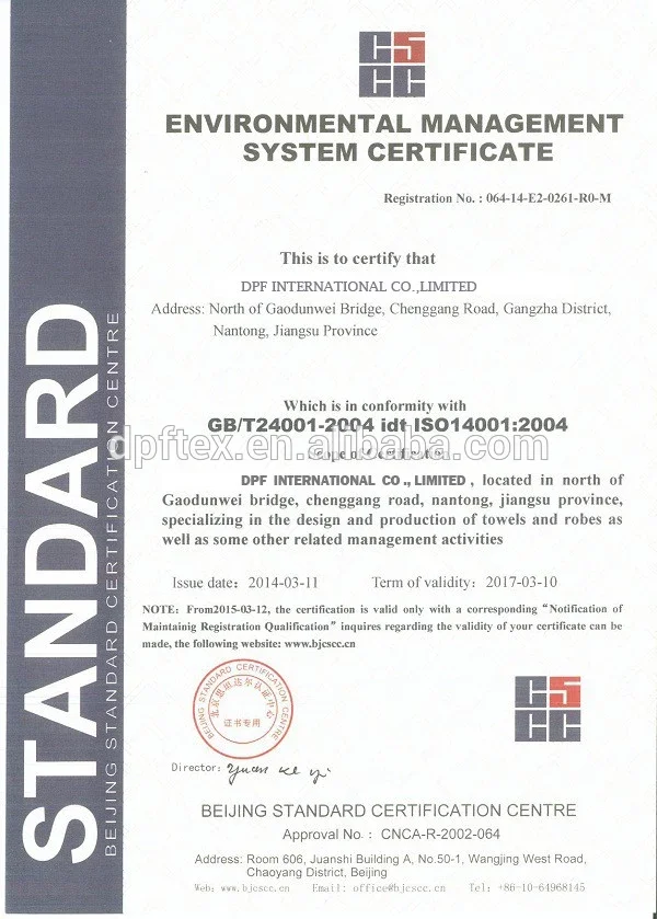To meet increasing market demands, DPF company has imported the most advanced production equipment. Presently possessing automatic computer controlled towel looms, a complete set of imported bleaching and dyeing equipment. Its bedding products mills and towels mills own more than 200 workers..