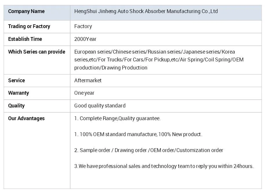 European series shock absorbers are our main and advantage products, like shocks for MAN, BENZ, VOLVO, DAF,SCANIA, VOLVO,ETC . 100% OEM standard production size. just inform us the shock OEM number and quantity, we will offer you the exactly prices soon.