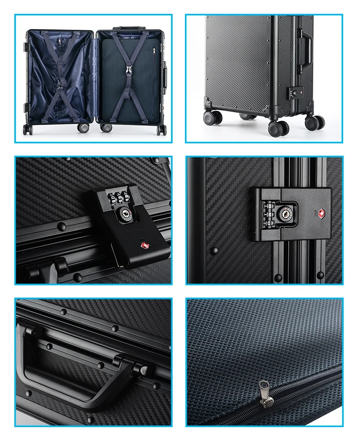 1) aluminum built-in retractable trolley with comfortable handle luggage cases