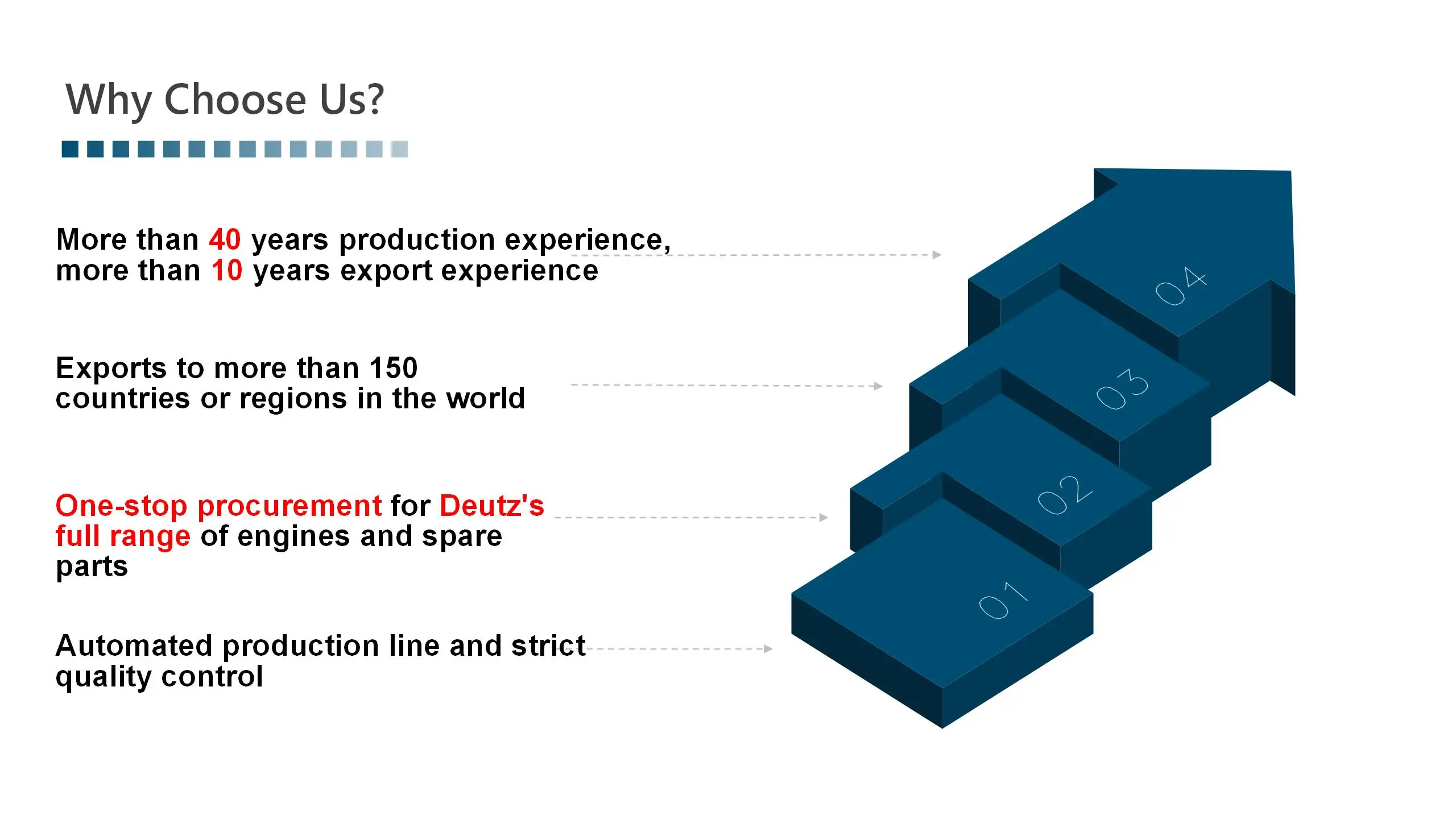 All of our Engines and Spare Parts comes from DEUTZ China license factories, which share the same technology with DEUTZ, all of them are same to DEUTZ.