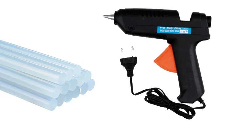 (2) hot melt glue stick is a 100% solid content adhesive that can be glued in the molten state to get proper flow and wetting.