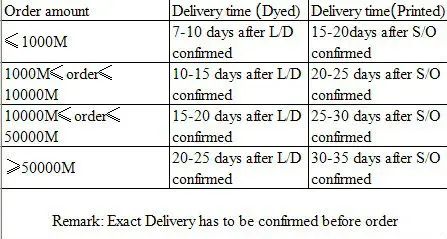 Shipping ways | Usually, we deliver the small order by UPS, DHL, etc. according to customer's instruction. We also ship products by air freight or ocean container in the case of large quantity. |