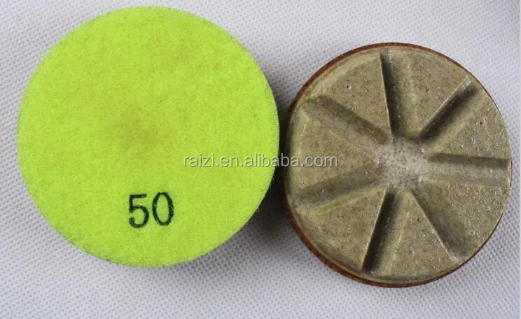 Features: The pads contain 100% diamonds, held tightly and durably by bonding-agent. The pads which can remove the scratches quickly are the first dry-polishing product and polish more effectively than any metal disc, resin-polishing pads and other bond abrasives in sharpening and flatting in the market. It has set a better foundation for fine concrete floor grinding and polishing in the future.
