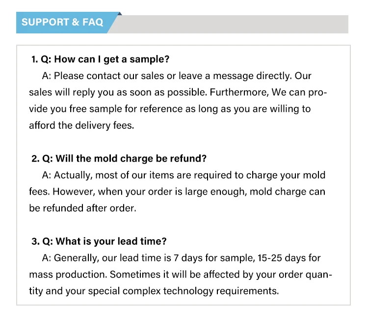 Delivery | 7 days for sample, 15-25 days for mass production. (According to order quantity) | ||||||