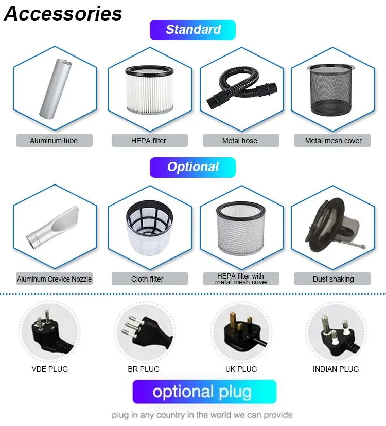 Standard | Metal hose / Aluminum tube / HEPA / Metal mesh cover | |||||