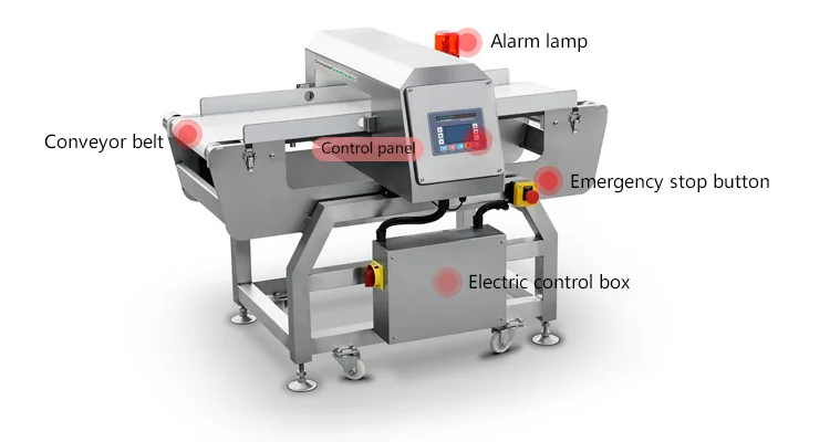 The frame adopts the structure of complete welding. Detection head is not easy to accumulate dust and meet HACCP requirements. The contact parts are made of food grade materials to minimize product contamination. The frame can be quickly disassembled, cleaned and reassembled.