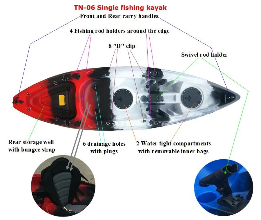 | Type: | Single fishing kayak | Black bungee | |