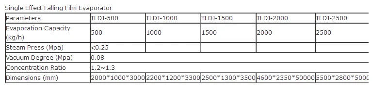 4. Low evaporation temperature. The heat quantity can be fully used. The heating of materials is warm, so it is applicable for concentration of heat sensitive materials.