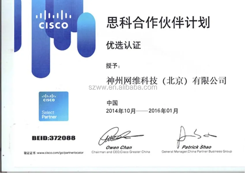 Shenzhou Wangwei is one of cisco certificated agents. We have a team of professional engineers that we can