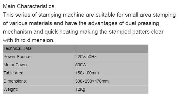 | Working Size | 120*90mm | 120*120mm | 90*80mm | 150*80mm | 230*150mm | 150*80mm | 230*150mm |