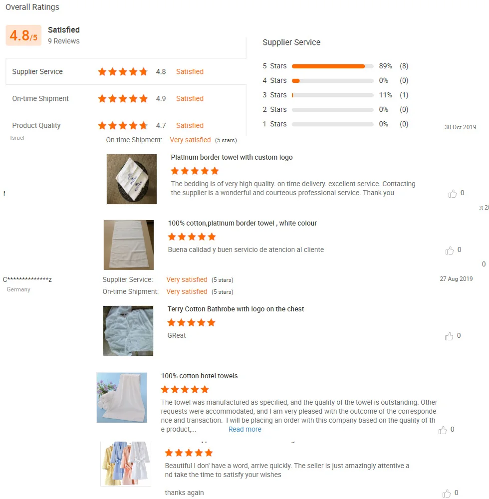Through our worldwide agents and distributors, now we supply textiles for many world famous hotel groups. We have many years' professional manufacturing experience, so we can have good quality control; we have many years' professional sales experience, so we can have good communications with our clients. "Good quality, better price, the best service" is our direction. We look forward to having win-win cooperation with worldwide friends!