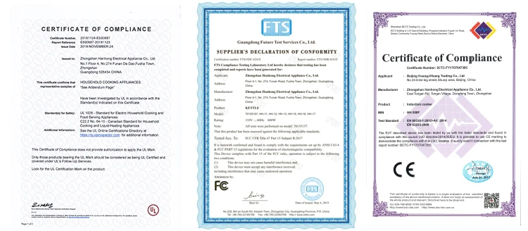 Hanghng's Hot pot induction cookers have UL certificate/America and Canada certificate.Also can pass the certification of CITY.