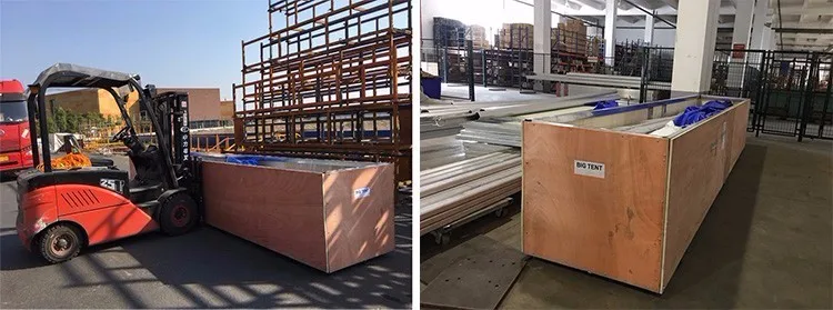 tent packing in LCL (less than a container): tent packed in wooden box, framed with square steel